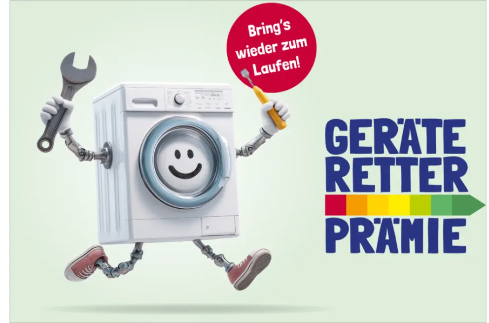 Geben Sie Ihren Elektrogeräten eine zweite Chance. Reparieren ist nicht nur deutlich günstiger als neu kaufen, sondern schont auch Umwelt und Klima. Mit der Geräte-Retter-Prämie erhalten Sie 50 % Förderung auf Reparaturen und Kostenvoranschläge für Elektro- und Elektronikgeräte im Haushalt.